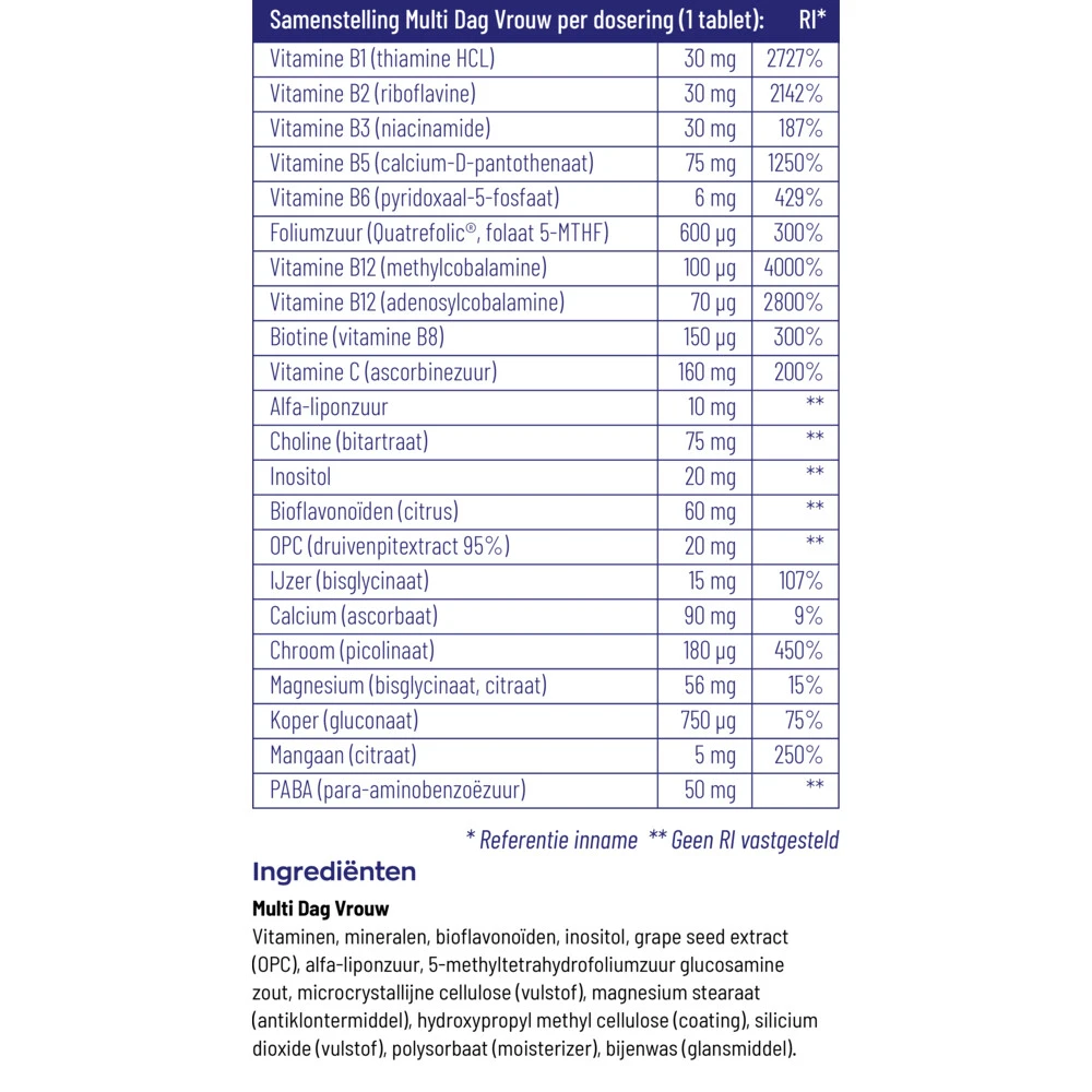 Vitakruid Multi Nacht VrouwVitakruid Multi Nacht Vrouw is een voedingssupplement op basis van vitamines en mineralen speciaal voor de vrouw. Wanneer de Vitakruid Multi Nacht Vrouw in combinatie met de Vitakruid Multi Dag Vrouw wordt gebruikt wordt ook rekening gehouden met het bioritme. Dit is de meest efficiënte en innovatieve toepassing van een Multi. ‘s Nachts heeft het lichaam meer behoefte aan de in vet oplosbare vitamines.Uitgekiende formule voor de nachtSynergetische werking do